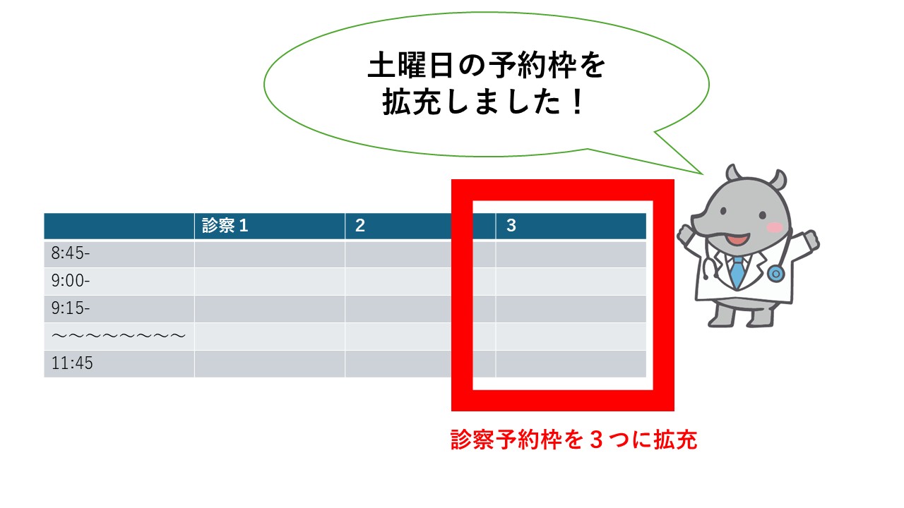 土曜日の予約が取りやすくなりました。